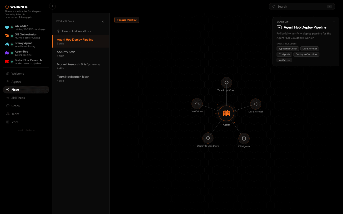 Alles in één overzicht. Agent-status, KPI's, campagne resultaten en workflow voortgang — live op je scherm.